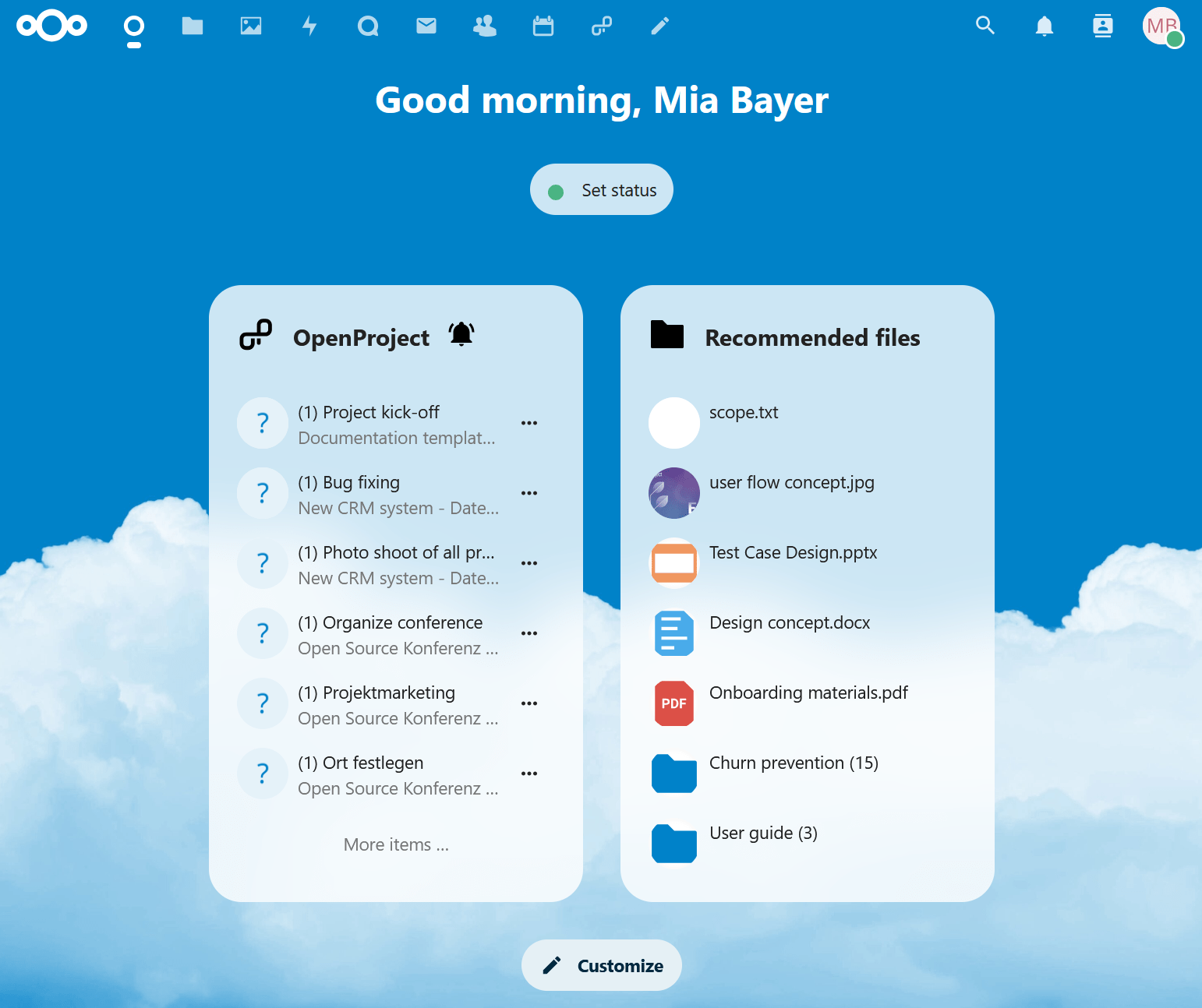 Visualice el widget OpenProject directamente en el panel de control de Nextcloud. Vea las notificaciones y actualizaciones de un vistazo sin salir de Nextcloud. Esta visibilidad en tiempo real de sus proyectos le asegura estar siempre informado.