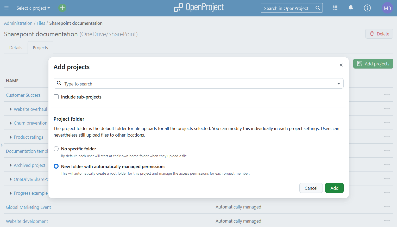 Cree y gestione carpetas de OneDrive y SharePoint desde OpenProject, garantizando una organización perfecta a medida que avanza su proyecto.