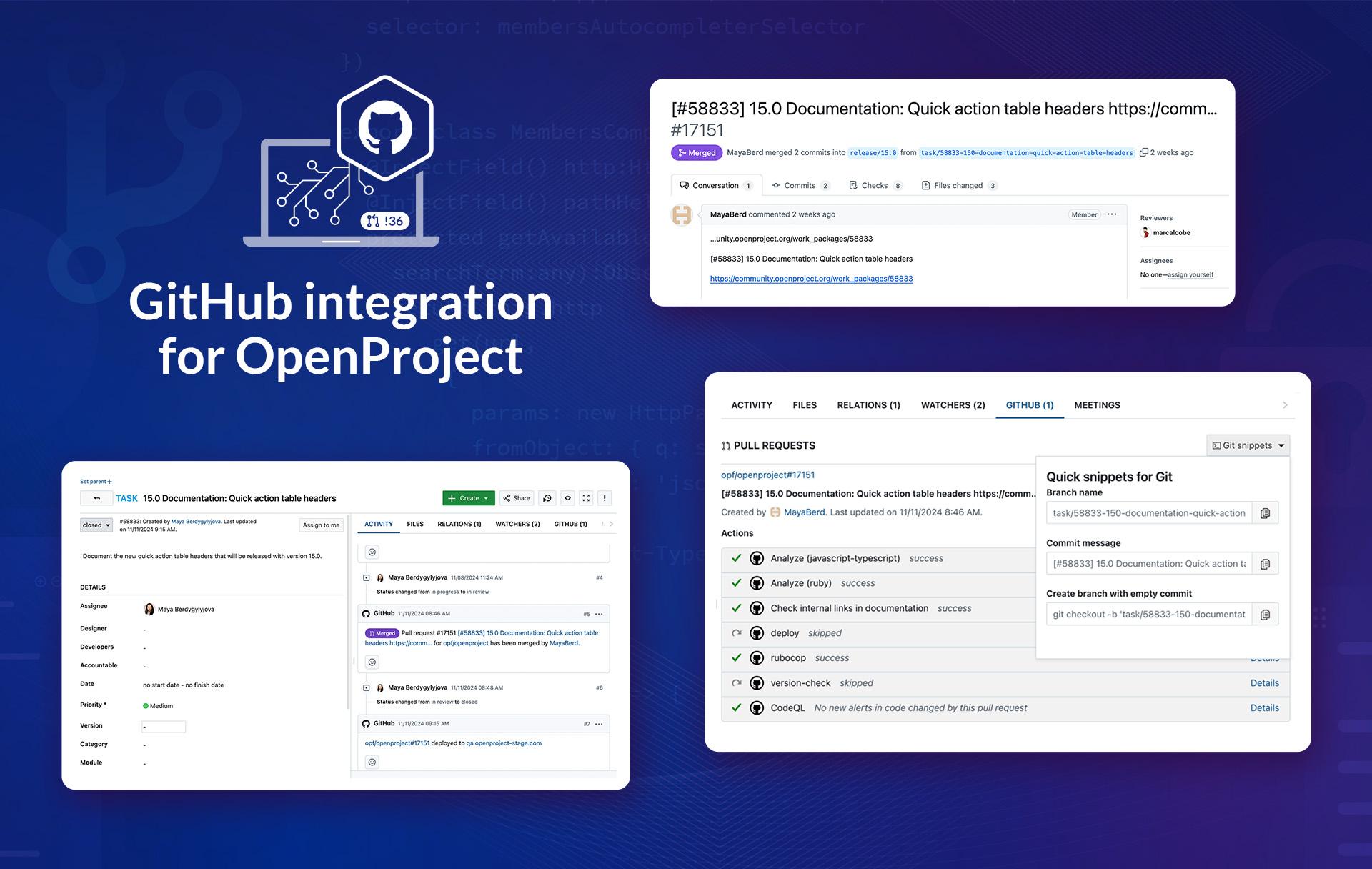 Integre y mejore su flujo de trabajo de desarrollo: Conecte la gestión de proyectos de OpenProject con el potente sistema de control de versiones de GitHub.